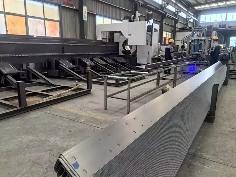 2. การเจาะ: ติดตั้งเครื่องเจาะ CNC ซึ่งรองรับการเจาะแผ่นใยและหน้าแปลนหลายมุม โดยมีความทนทานต่อเส้นผ่านศูนย์กลางรูที่ ±0.2 มม. และความแม่นยำของระยะห่างรูที่ ±0.3 มม. นอกจากนี้ยังสามารถสร้างรูที่สอดคล้องกับรูปแบบการเชื่อมต่อเหล็ก C-section มาตรฐานของสหรัฐอเมริกาได้พร้อมกัน (เช่น รูอะแดปเตอร์ Simpson Strong-Tie)
