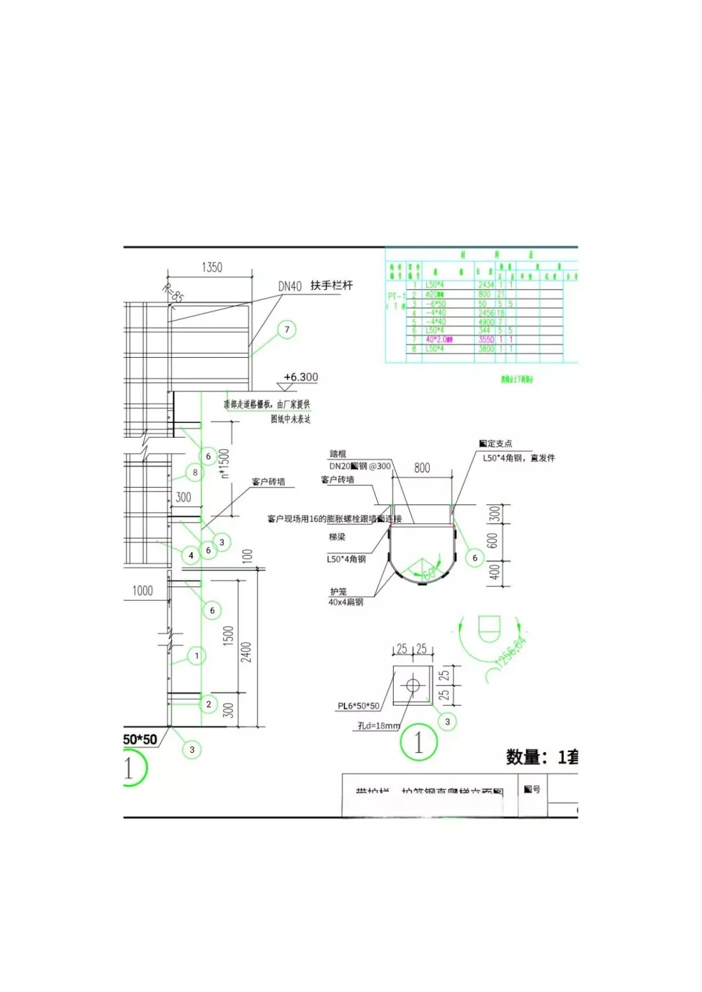 ชิ้นส่วนแบบฝัง: ต้องเชื่อมต่อการยึดบันไดโดยใช้สลักเกลียวขยาย (M16 หรือใหญ่กว่า) หรือแผ่นเหล็กแบบฝัง แผ่นเหล็กฝังต้องมีความหนาอย่างน้อย 10 มม. เส้นผ่านศูนย์กลางแกนพุกต้องมีอย่างน้อย 12 มม. และความลึกที่ฝังต้องมีอย่างน้อย 150 มม.